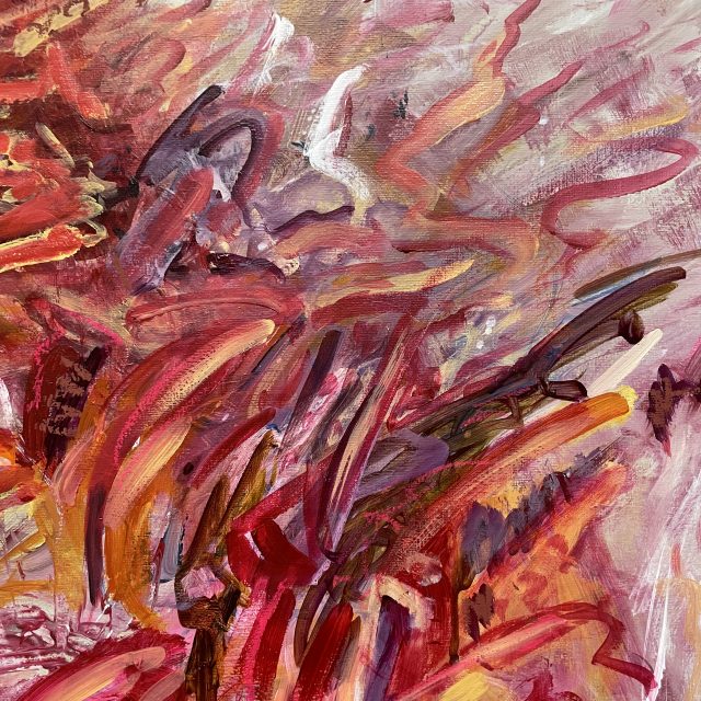 Su obra se centra en la exploración y composición del color, experimentando con collages y texturas. También se ha iniciado en la cerámica pintada a mano y la estampación textil, ampliando constantemente su repertorio artístico.
