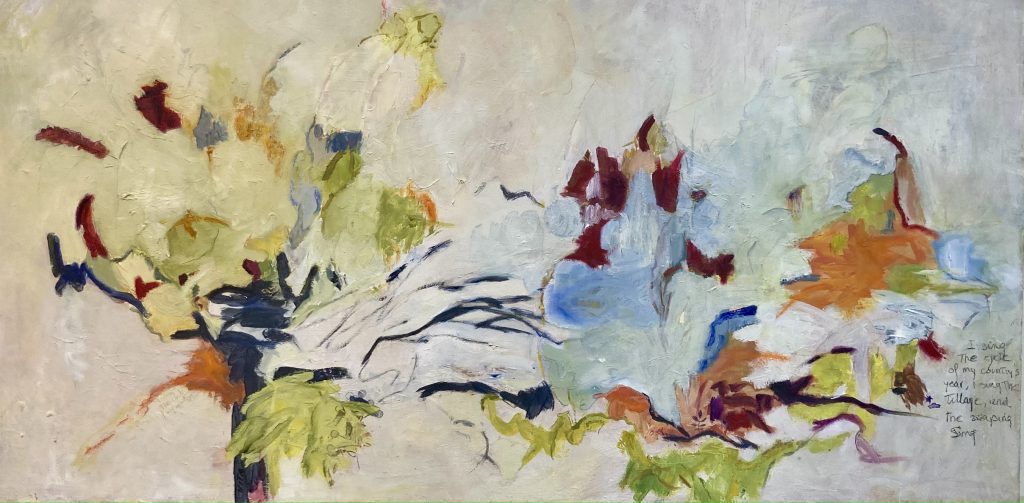 Los trazos abstractos de estas pinturas evocan misma fluidez poética presente en las palabras de Vita. Su poesía se combina armoniosamente con una paleta de colores suaves y orgánicos que danzan en la obra para representar la flora y la arquitectura de los jardines de la poeta. Este juego de abstracciones en la que los elementos no se reconocen al completo dan un toque de misterio y profundidad a la obra.